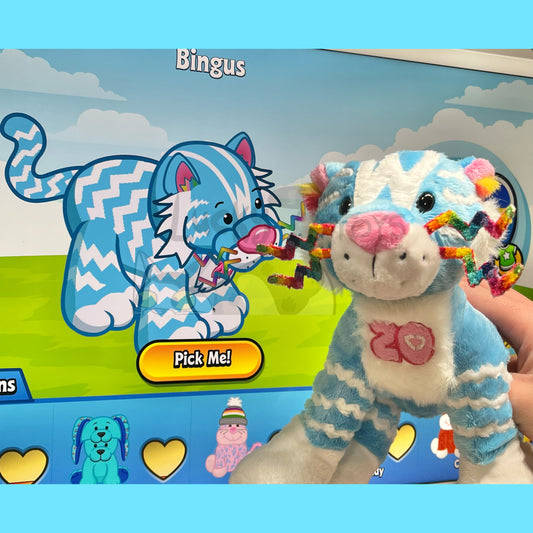 "20 Year Tiger" Webkinz Inspired Plush Blue and White Tiger with Rainbow Whiskers (Ships in 2-4 weeks)
